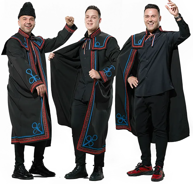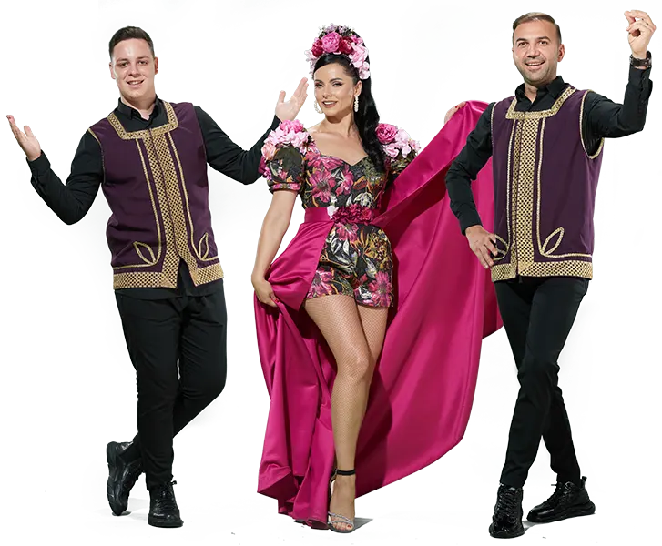 Prin cantecele reprezentative cat si prin portul specific regional, am cules cu grija esenta folclorului imbinand cantatul si vestimentatia traditionala stilizata pentru a va prezenta un spectacol fermecator.